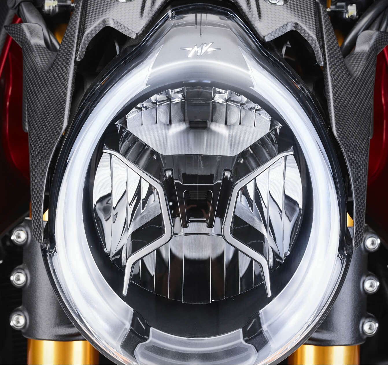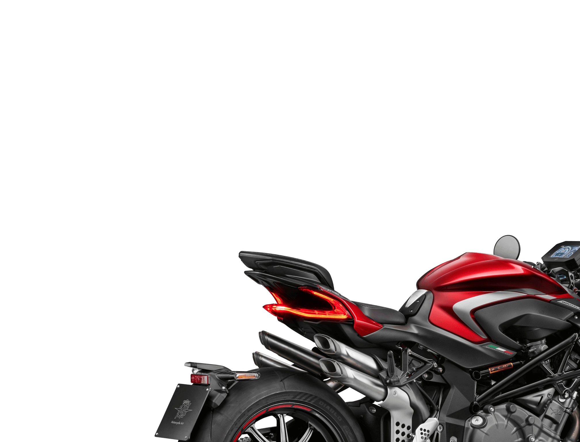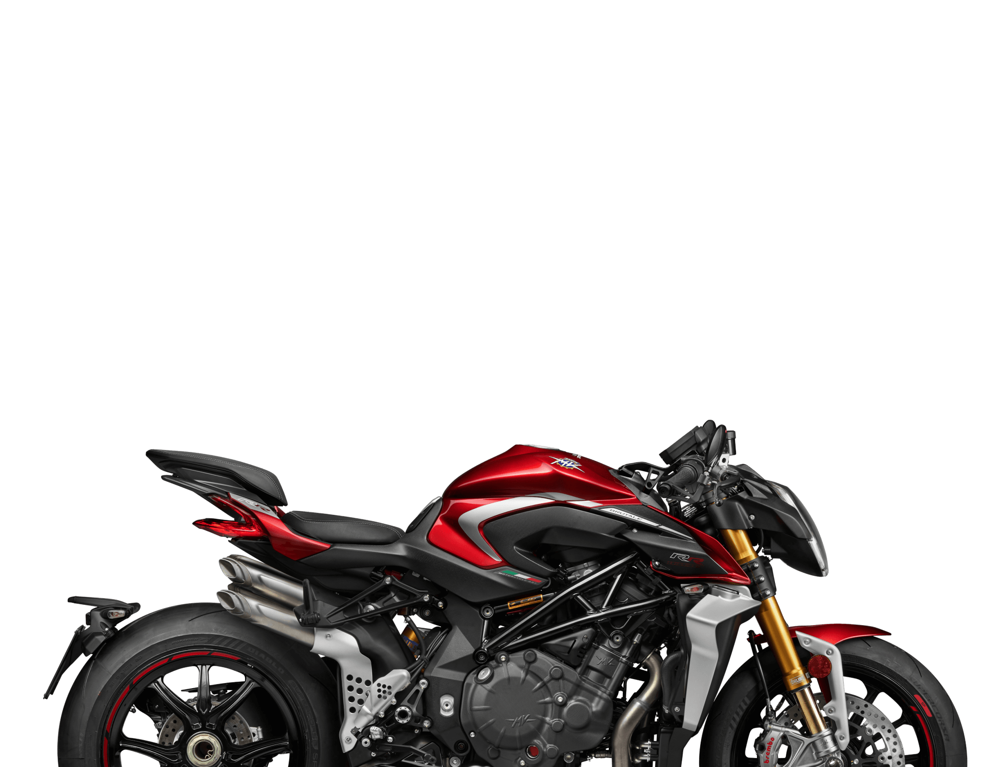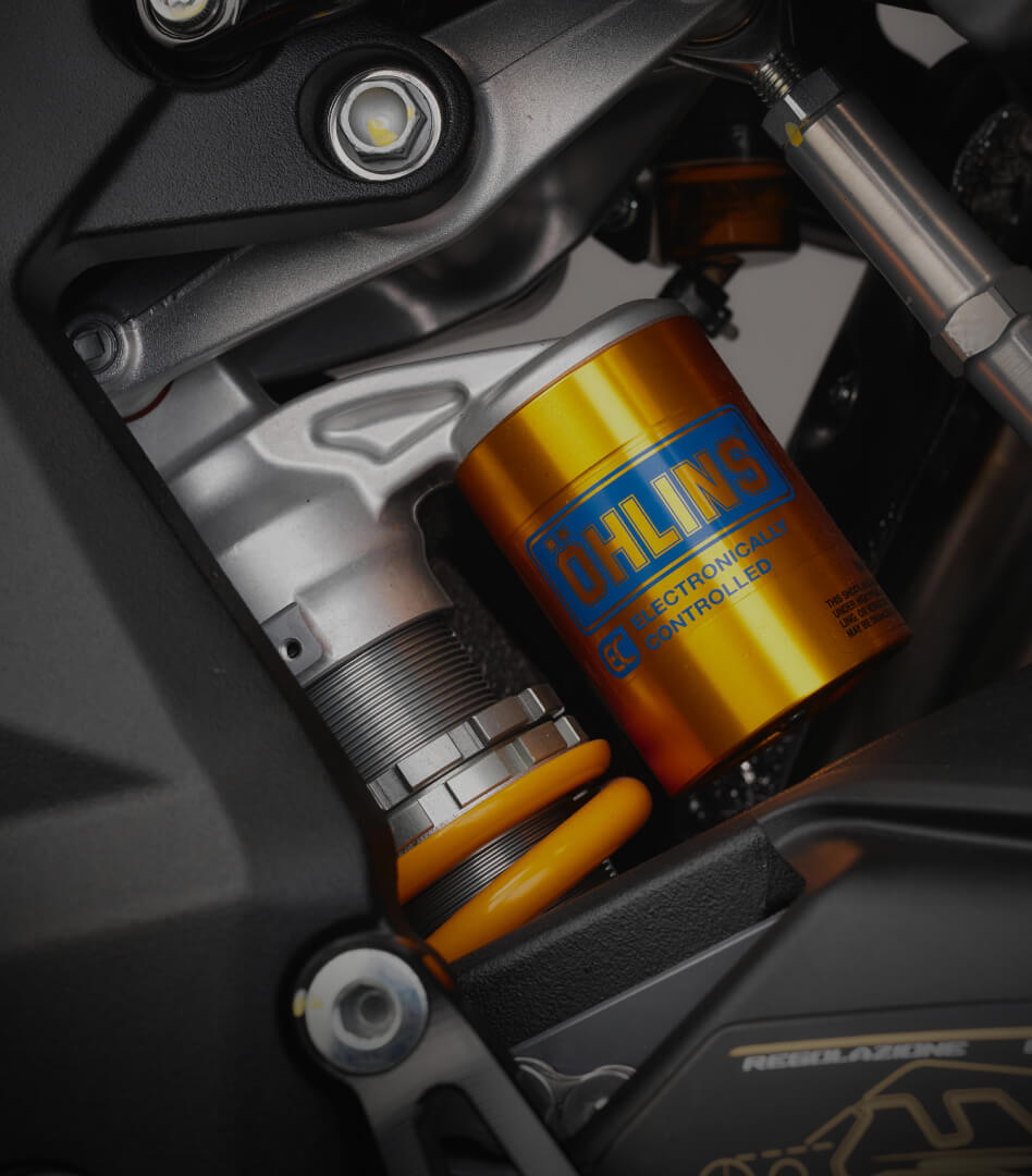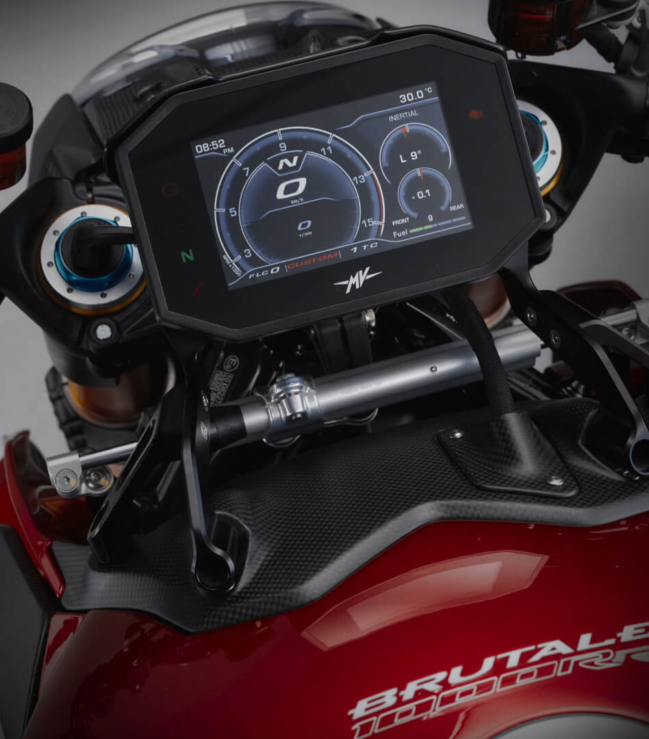 The Brutale 1000 RR features Öhlins Smart EC 3.0 suspension, which, thanks to a dedicated algorithm, processes various inputs from the inertial platform, engine control ECU, and ABS to identify and analyze braking, corner entry, apex, acceleration, and corner exit, always providing the rider with optimal support. This new event-based model thus analyzes the specific riding situation rather than just adjusting electronic regulation clicks.