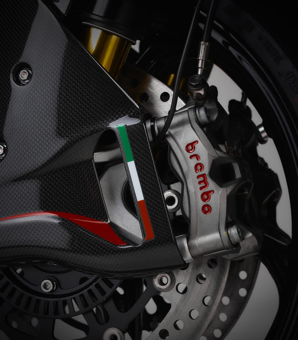 The braking system is by Brembo, featuring a Stylema caliper with four pistons at the front.