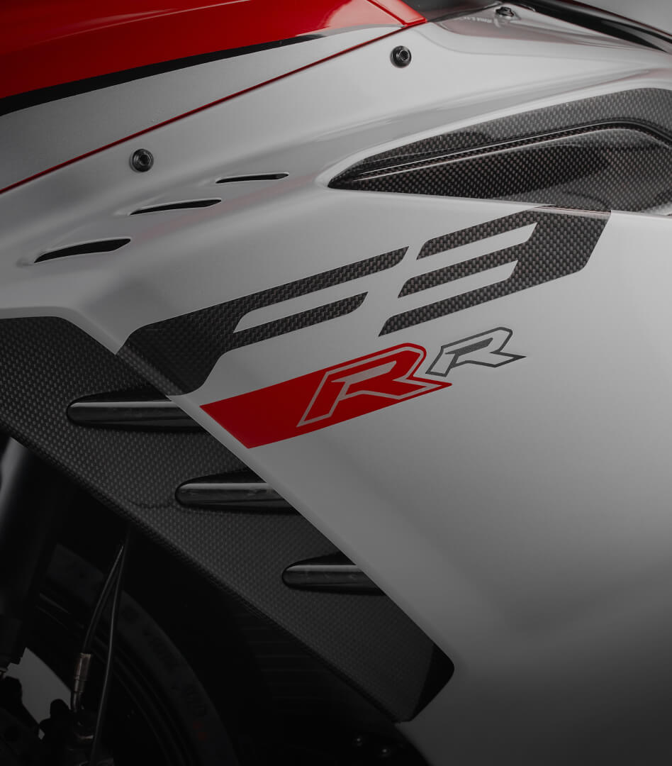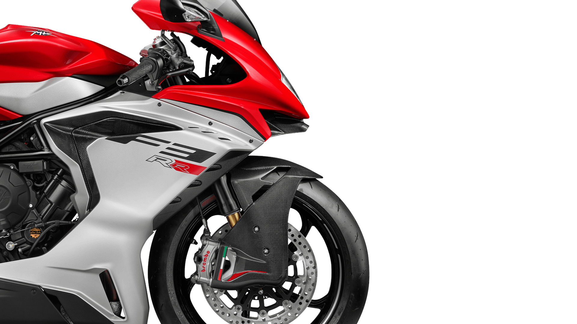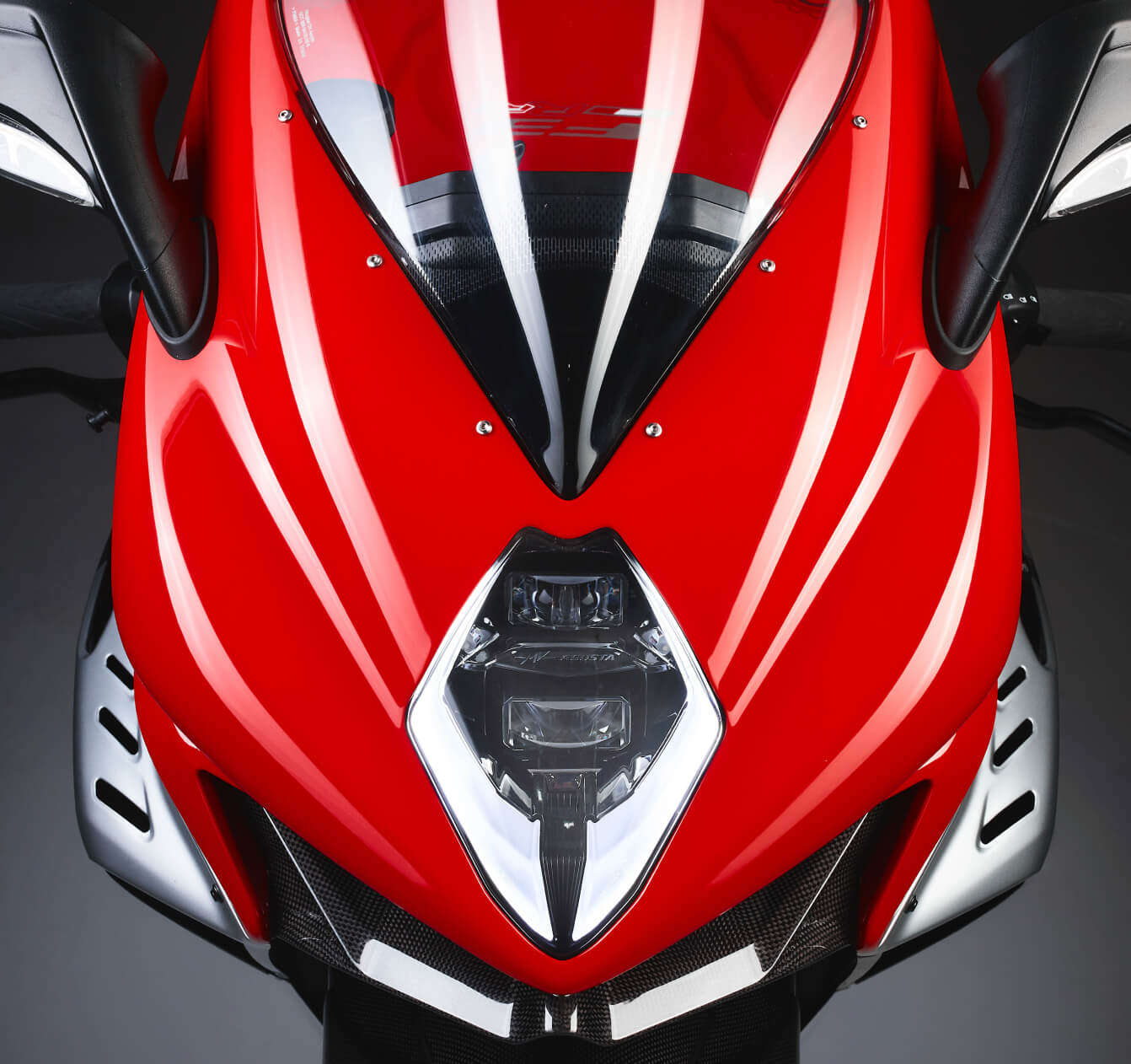 The three cylinder engine, Euro5+, is an example of efficiency, thanks to the systematic reduction of internal friction. With its 147 hp - 155 with the racing kit - it is an example of extraordinary power and absolute compactness. The titanium valves let you reach extremely high rpms, enhancing the pure racing vocation of the F3 RR Ottantesimo. New 9-disc slipper clutch with torque assist, with a 50% lighter clutch lever compared to previous versions.